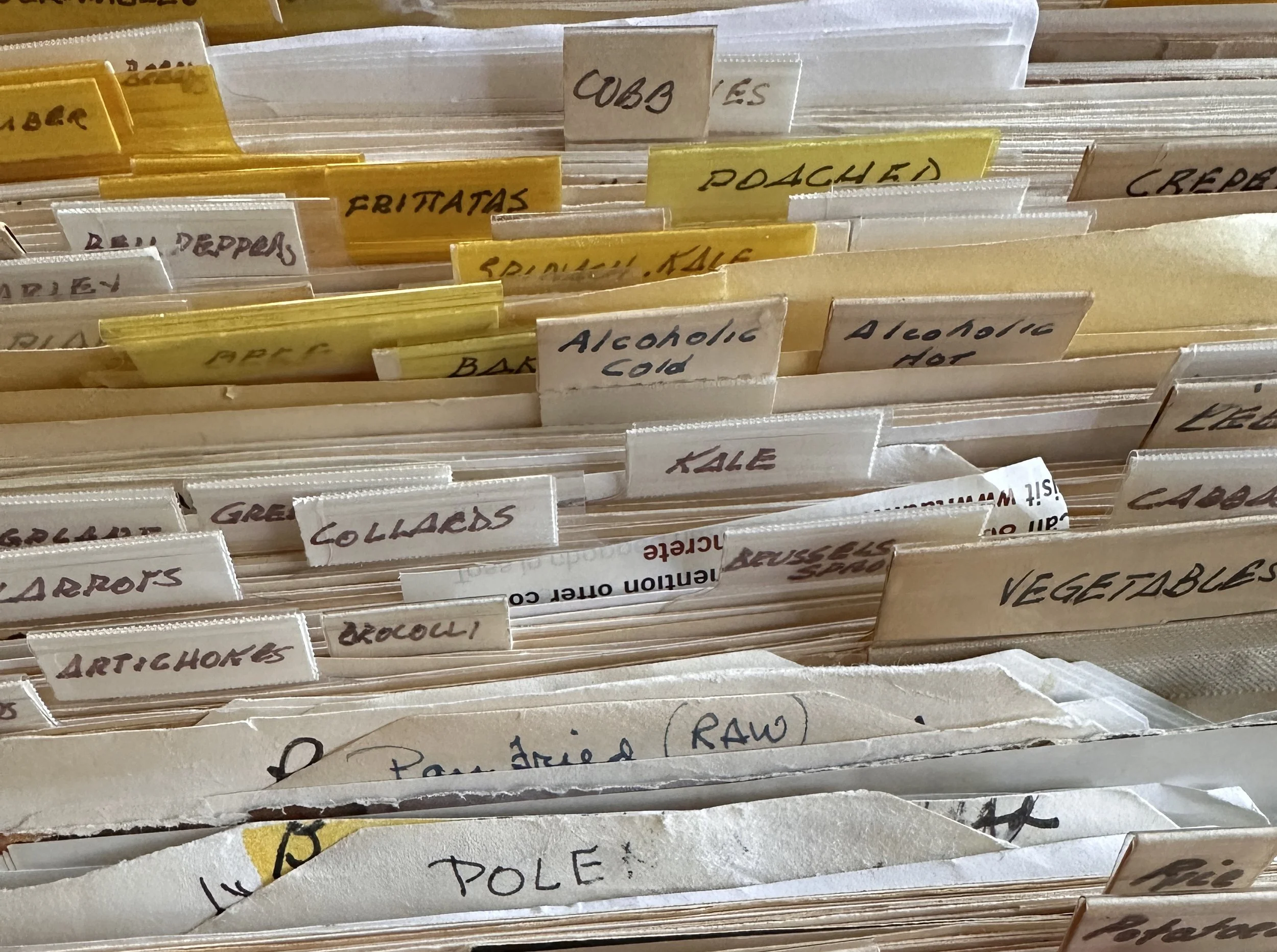 I always thought of my mom as an excellent cook, probably because she loved collecting recipes. She’d cut them from magazines or copy them from library books onto index cards, even if she already had a dozen similar ones. She owned the Time Life Cookbooks of the World series, though I don’t remember her ever cooking from them. And Julia Child was Mom’s hero. But what I remember most is the four-drawer file cabinet in the living room of our single-wide trailer. Inside, she built a massive recipe file system, from appetizers to desserts, from dinner party menus to cocktails, and so much more.